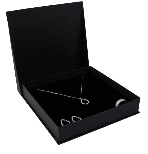 Tugevast kartongist valmistatud ehtekarp on viimistletud mattmusta värviga. Reljeefne pind ja minimalistlik disain rõhutab eksklusiivsust. Karbi kaas sulgub diskreetse magnetkinnitusega. Sametine sisu kaitseb ehet kriimustuste eest.